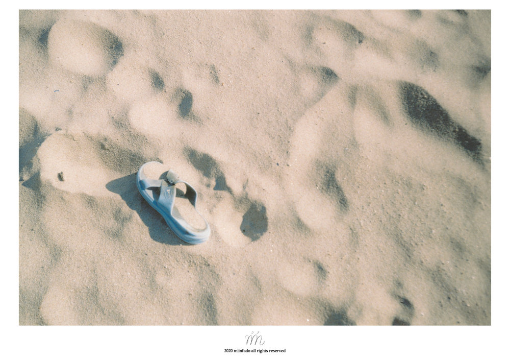 백사장에 외로이 놓인 슬리퍼 하나입니다.